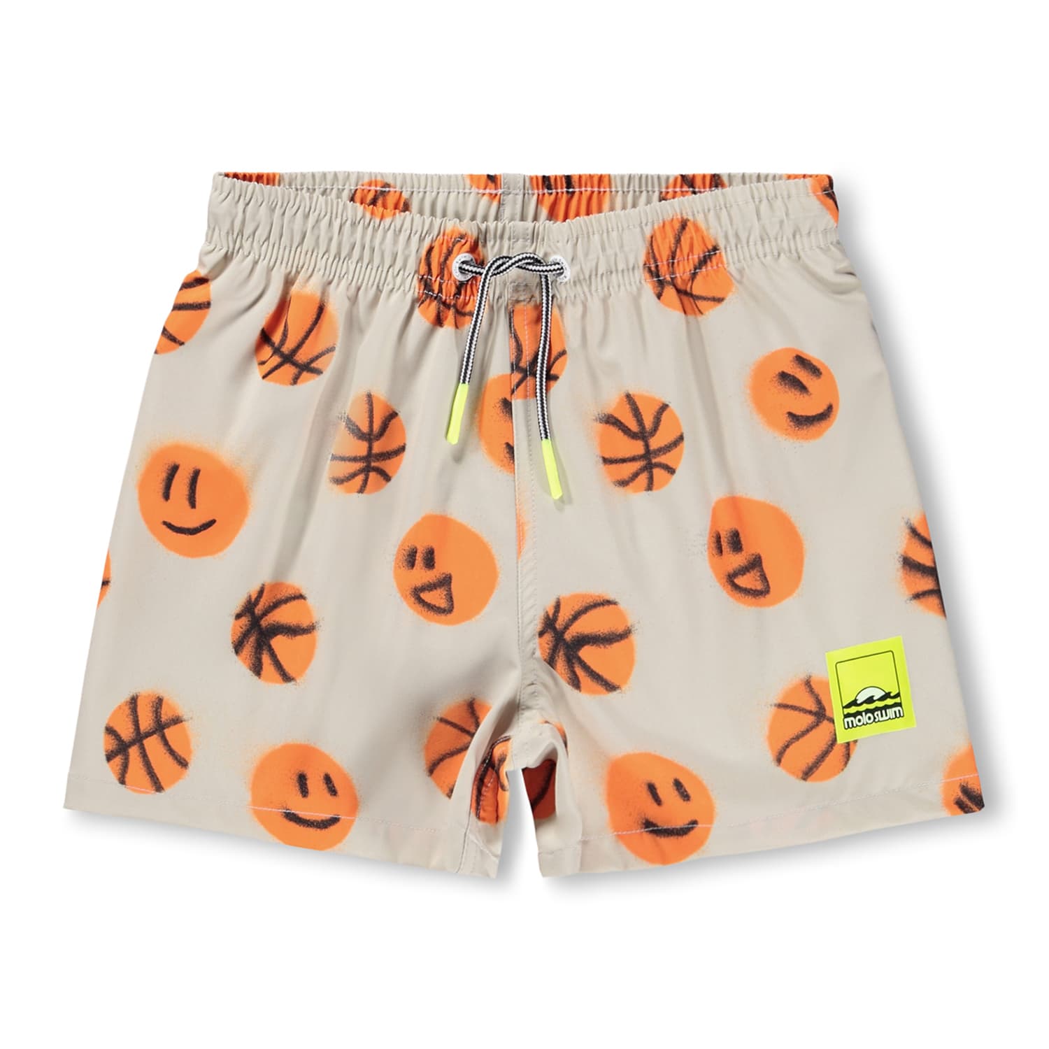 Laat je kind stijlvol en vrolijk zwemmen met deze sportieve Molo Niko zwembroek! Gemaakt van duurzaam gerecycled polyester, biedt deze zwembroek UV50+ bescherming tegen de zon. De shorts hebben een losse pasvorm die tot halverwege de dij valt, met elastiek en trekkoord in de taille voor een perfecte, verstelbare fit. Een zachte mesh binnenbroek zorgt voor extra comfort, terwijl een handige achterzak ruimte biedt voor kleine spullen. Het vrolijke oranje smileyprintje maakt deze zwembroek een echte favoriet voor actieve kinderen!